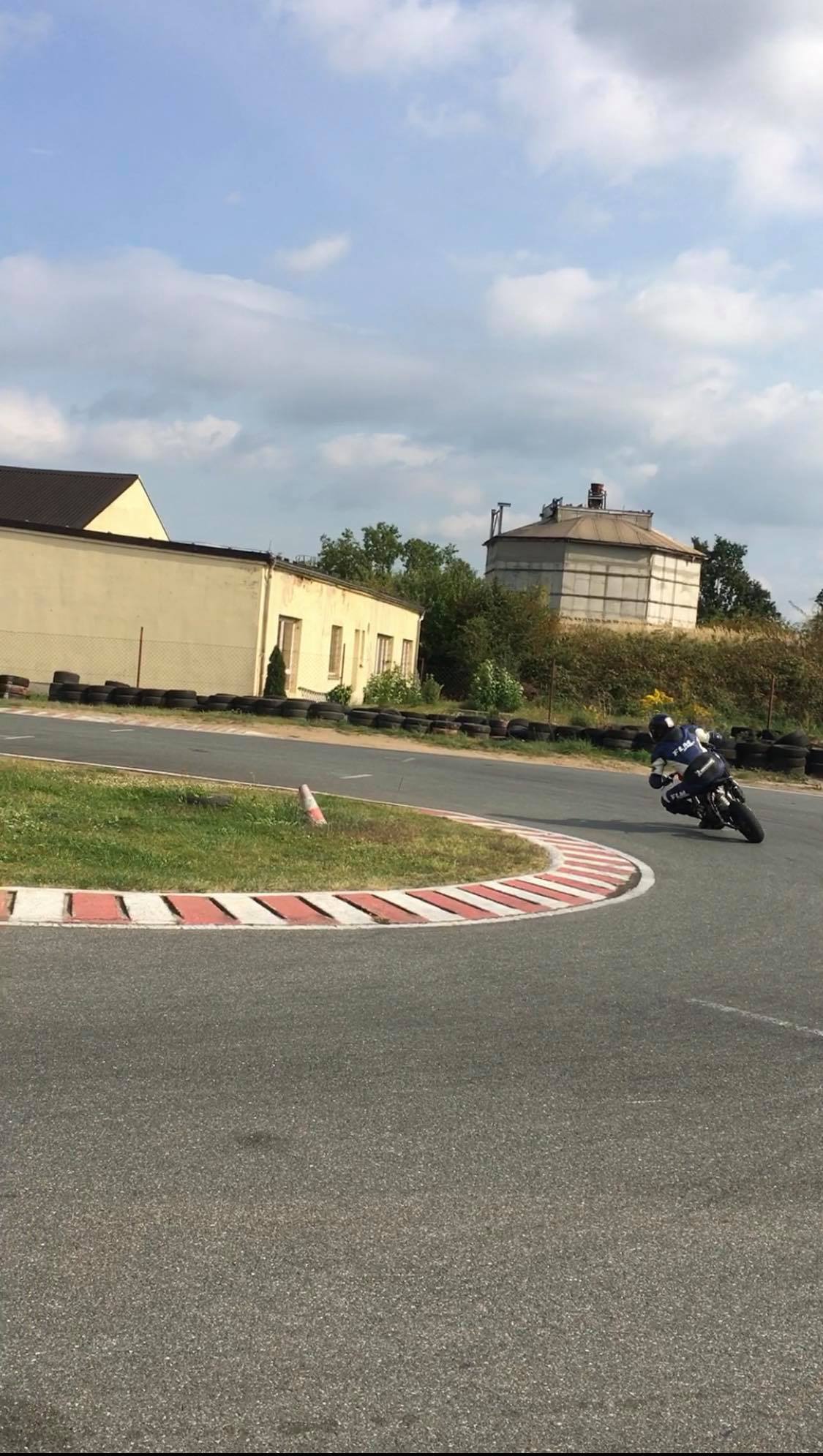 A no taka jest prawda. Gleba nie kosztuje nic, oprócz urażonej dumy, dlatego pozwalałem sobie na wiele. Szukałem granic przyczepności, starałem się rozumieć uślizgi i szukać rozwiązania ich problemu. Może na wyjściu za dużo gazu? Przegrzana opona? Zła linia przejazdu? Pytaniom nie było końca, ale każda kolejna sesja sprawiała, że rozumiałem więcej. Bawiłem się jeżdżeniem, ale również uczyłem się błędów na każdym kontakcie z asfaltem. Dodatkowo każdy trening starałem sobie rozplanować, aby nie robić bezsensownych okrążeń. A to skupiałem się na pierwszej części toru, a to na końcowej albo próbowałem pokonać 10 kółek w niemalże identycznym tempie. Ten mały motorek pozwolił mi nie tylko na spróbowanie różnych ustawień, ale również na szukanie limitów moich, a także Pit Bike.