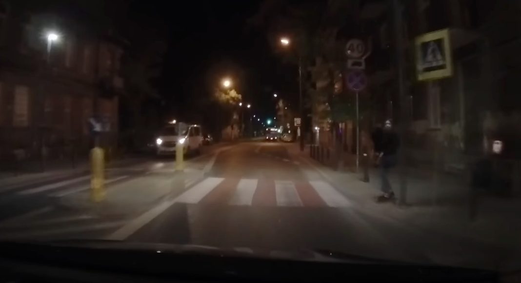 Jesień to pora roku, która wybitnie nie sprzyja bezpieczeństwu pieszych. Późno wstające słońce i wcześnie zapadający zmrok, częste opady, mokre liście na jezdni i słaba widoczność, którą dodatkowo pogarszają oślepiające światła pojazdów nadjeżdżających z przeciwka. W taki właśnie ciemny jesienny poranek doszło do sytuacji widocznej na filmie opublikowanym niedawno na YouTubie. Kierowca jadący dosyć wąską ul. Szwedzką w Warszawie ledwo unika wjechania w pieszą, która znalazła się na pasach.