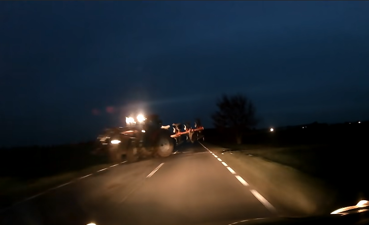 Na szczęście nic nikomu się nie stało, a mogło być naprawdę tragicznie. To video, to zdecydowanie jedno z tych o włos od tragedii. Noc i nieoświetlony pług orny maszyny rolniczej jadącej drogą publiczną, to śmiertelne połączenie.