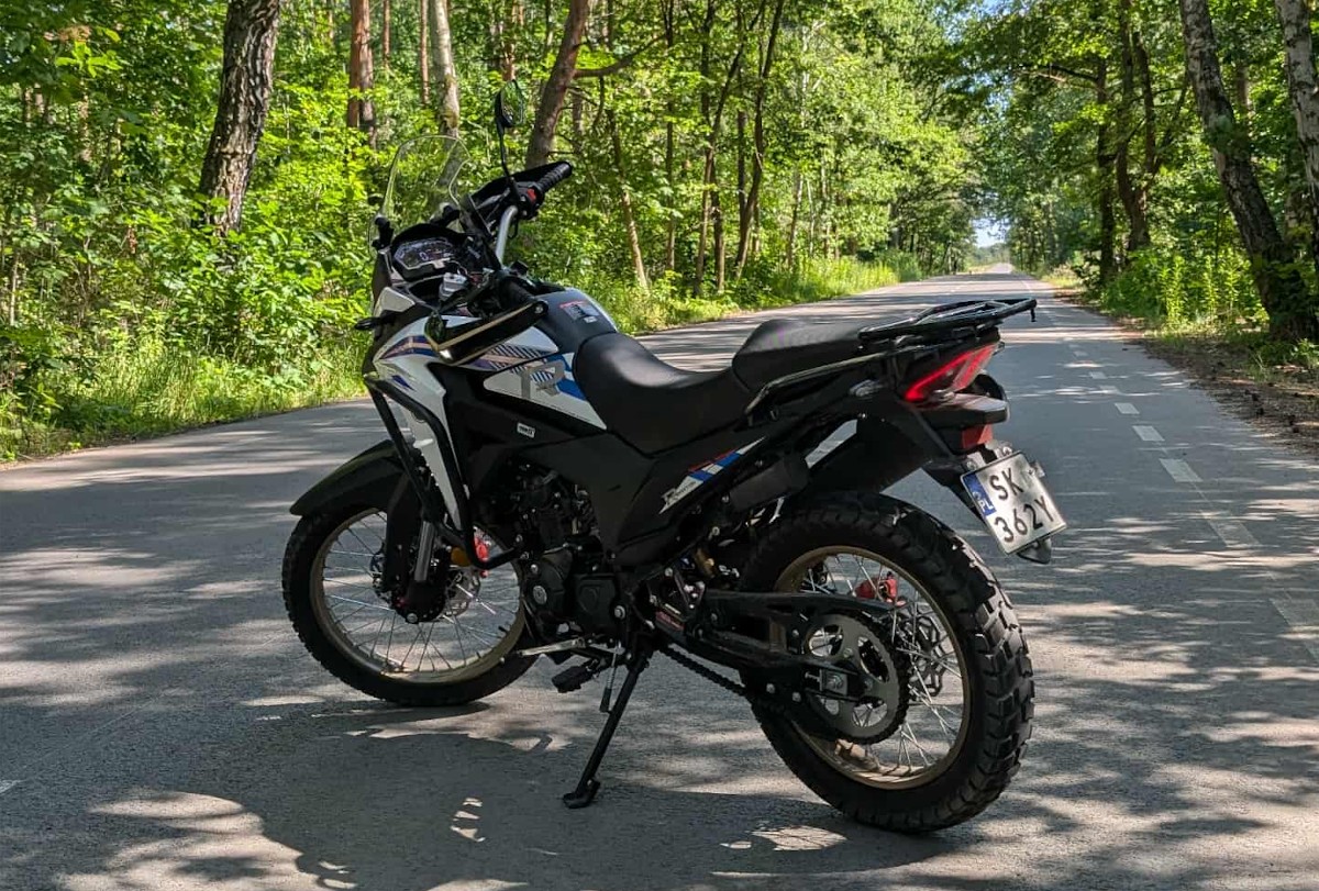 To właściwie propozycja przedpremierowa, bo QJ Motor SRT 125DX nie został jeszcze oficjalnie zaprezentowany w Polsce i mało o nim wiemy, ale zapowiada się naprawdę arcyciekawie. Nie dość, że wygląda jak mała Africa Twin, to jeszcze jest świetnie wyposażony. Toczy się na szprychowych kołach w słusznych offroadowych rozmiarach 21 i 18 cali, ma regulowane zawieszenie, kostkowe opony, kolorowy wyświetlacz i światła LED. Czekamy!