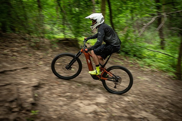 I teraz płynnie przechodzimy do tego, co motocyklista może zrobić z tym rowerem. Otóż pamiętam czasy, gdy po tych górkach i lasach, po których teraz jeżdżę jedynie rowerem, jeździliśmy motocyklami. Tak, jeszcze parę lat temu po białołęckich lasach i po piaskarni (teraz zamienionej na szkółkę leśną) latały całe chmary motocyklistów na różnego rodzaju sprzętach offroadowych. W tym momencie nie odważyłbym się wjechać do lasu i nie chodzi o mandaty, i narzucone z góry ograniczenia, a o zmianę podejścia w narodzie, czyli w nas samych. Szanujemy przyrodę, respektujemy prawo, staramy się żyć w zgodzie z planetą. Nie wiem jak wy, ale ja po prostu wstydziłbym się wjechać strzelającą i grzmiącą DRZ-tą w las. Po prostu nie. I teraz przychodzi nam z pomocą taki rower, który sprawi, że przyjemność eksploracji terenów zielonych wraca, nie ma stresu, że spacerowicz doniesie na nas. Jedziemy rowerem, więc nie łamiemy prawa, a rower ten pomaga nam pokonywać wzniesienia, więc nie jesteśmy wypompowani, cali mokrzy i umęczeni. Czerpiemy przyjemność z prędkości na zjazdach, jeżdżąc po górach, ciesząc się lekkością naszego pojazdu.