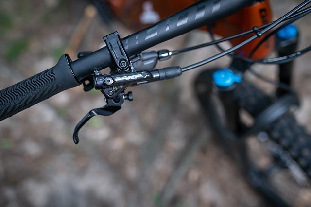 Hamulce to majstersztyk. Modulacja, siła hamowania, jaką zapewniają czterotłoczkowe zaciski wgryzające się w ponaddwustumilimetrowe tarcze to po prostu bajka. Miałem taką sytuację na moim białołęckim singlu, że skoczyłem z jakiegoś korzenia na zjeździe, przy lądowaniu przednie koło zanurkowało w głębszym piasku, a mnie majtnęło prosto na drzewo.