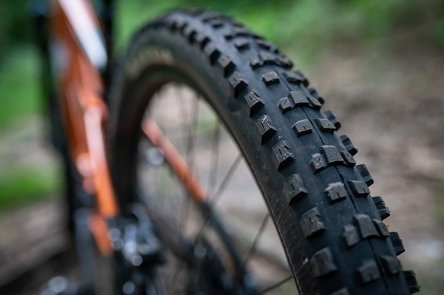Choć ważę grubo ponad 90 kg nie udało mi się ich dobić, mimo że próbowałem. Nie czułem potrzeby dopompowania ich, dlatego nieprofesjonalnie przyznaję, że nie sprawdzałem jakie miałem nabite ciśnienie. Nie jestem profesjonalnym downhillowcem, więc sobie to darowałem ze zwykłego lenistwa – bo pompkę do amorów w domu posiadam. Wybaczcie.