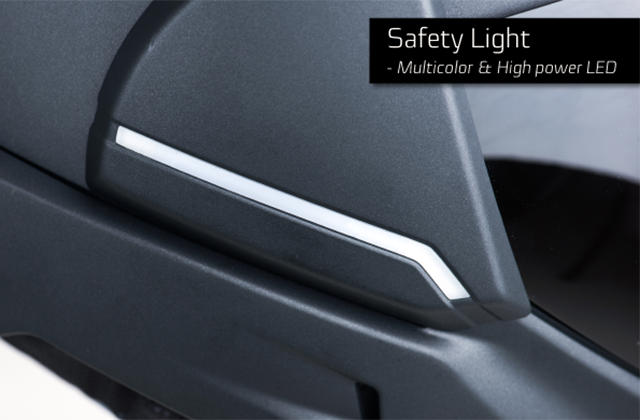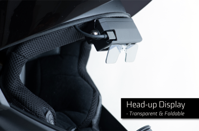 Na pokładzie, czy raczej w skorupie znalazło się miejsce na tylną kamerę, dzięki której pole widzenia kierowcy poszerza się do 360°. Specjalna aplikacja pozwala na sterowanie funkcjami kasku, takimi jak zarządzanie dźwiękiem i funkcjami Bluetooth dla wbudowanego interkomu.