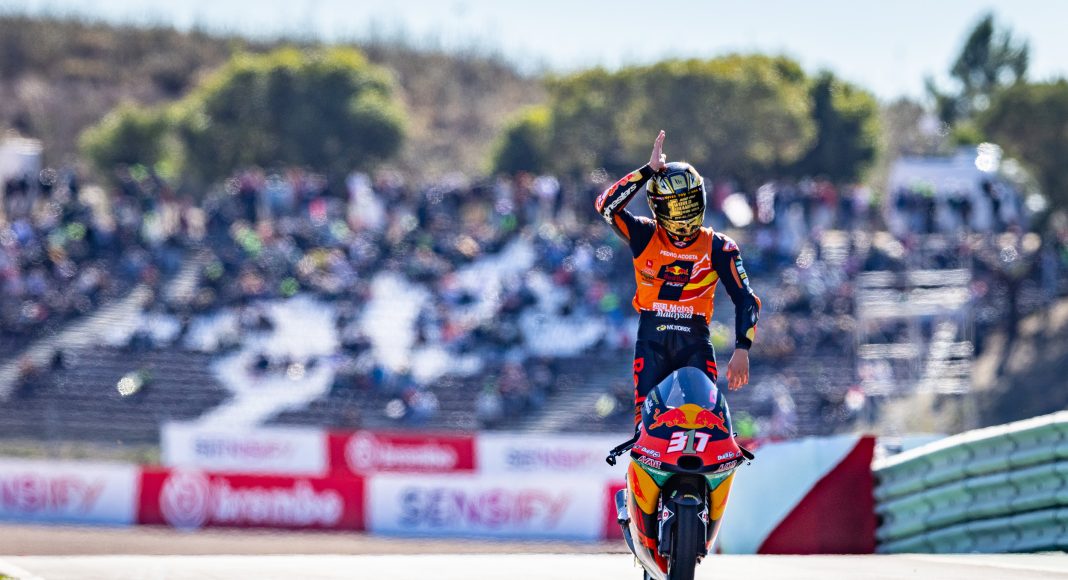 Arrive, win the title, leave!!! 💪@37_pedroacosta takes the #Moto3 title in his debut season!!! 🥇#RookieChamp 🦈 | #AlgarveGP 🏁 pic.twitter.com/MBu2gvYxuB
