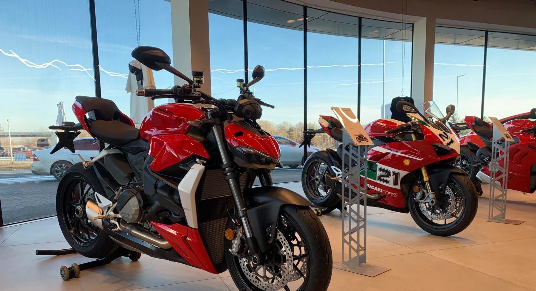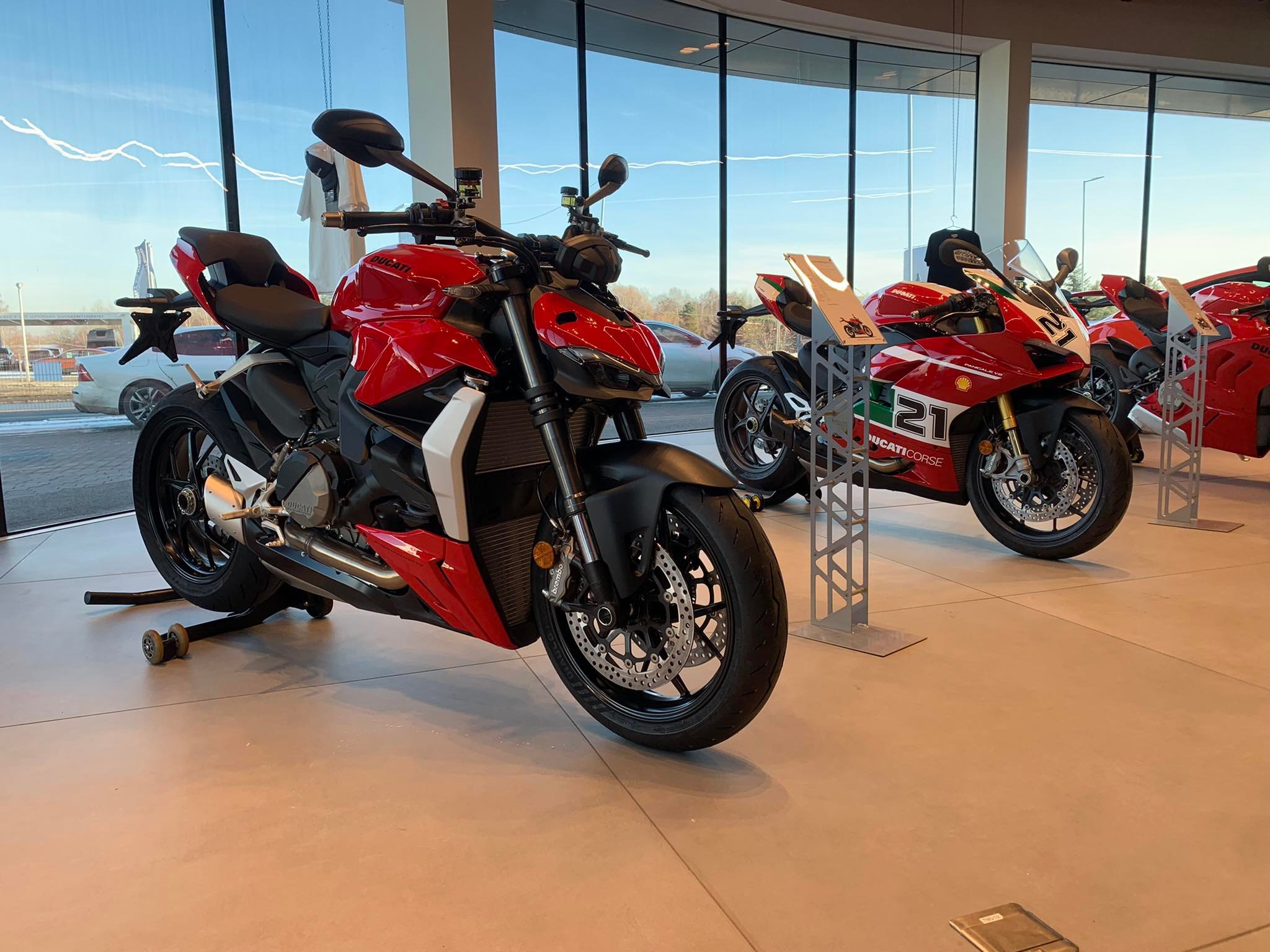 Zaraz po przyjechaniu na miejsce szybko udaliśmy się do środka salonu, gdzie już od samego wejścia witały nas najnowsze motocykle starannie ustawione obok siebie. Zanim jednak bliżej się im przyjrzałem wraz z Krystianem Kaletą z Ducati raczyliśmy się przepyszną kawą i dyskutowaliśmy na temat poprzedniego, a także nadchodzącego roku. Ducati zaliczyło bardzo udany sezon i może pochwalić się rekordową liczbą sprzedanych motocykli, których było 59 447. Czy taki dobry wynik może dziwić? Wydaje mi się, że nie. Inżynierowie z Bolonii skrupulatnie pracują nad nowymi wcieleniami motocykli, które są niesamowicie dopracowane i zaawansowane techniczne. Warto jeszcze zwrócić uwagę na fakt, że włoski producent bardzo chętnie dzieli się rozwiązaniami wyścigowymi z klasy królewskiej i bardzo chętnie wdraża je do drogowych odpowiedników.
