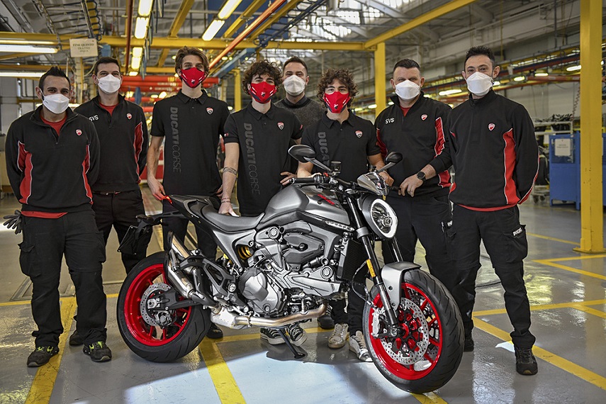 Zawodnicy MotoGP Pecco Bagnaia z Ducati Lenovo Team, a także Enea Bastianini i Luca Marini z zespołu Esponsorama Racing, na krótko przed wyjazdem na testy przedsezonowe w Katarze, odwiedzili fabrykę w Borgo Panigale, by móc osobiście podziwiać narodziny nowego modelu na linii montażowej. Bagnaia, Bastianini i Marini spędzili cały poranek w siedzibie Ducati i mieli okazję poczuć emocje, które towarzyszyły powstaniu pierwszej sztuki Monstera.