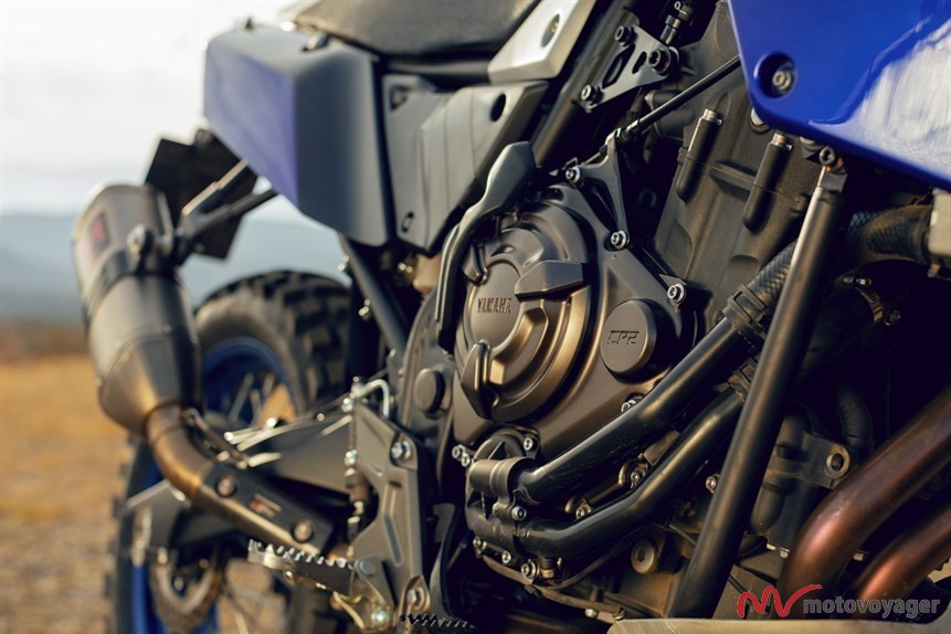 Yamaha Tenere 700 napędzana będzie pochodzącym modelu Yamaha MT-07 dwucylindrowym silnikiem rzędowym o pojemności 700 cm3 o mocy 74 KM. Waga gotowego do jazdy jednośladu to około 180kg.