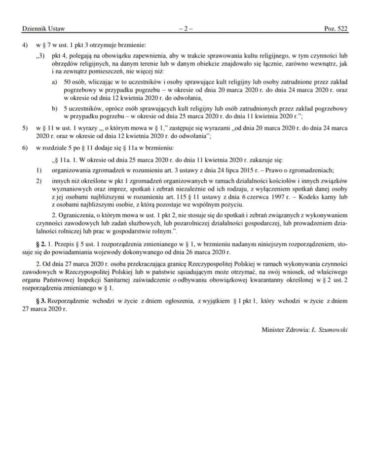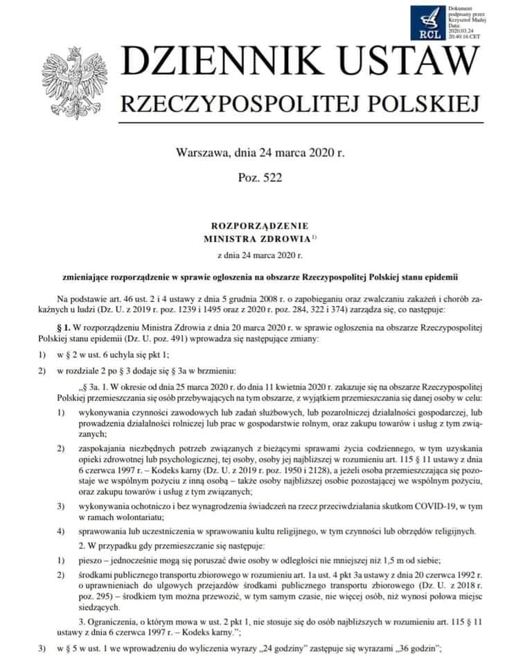 ” okresie od dnia 25 marca 2020 r. do dnia 11 kwietnia 2020 r. zakazuje się na obszarze Rzeczypospolitej