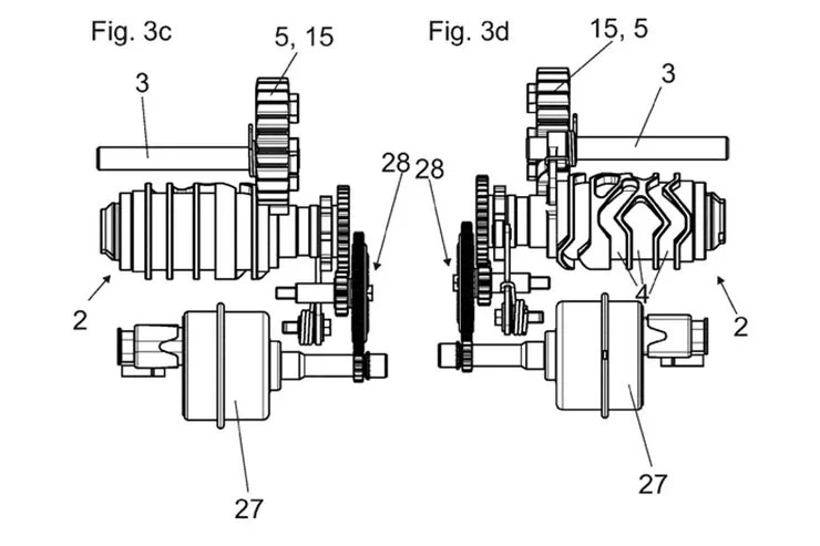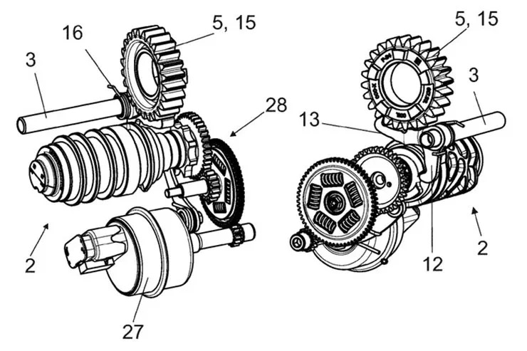 Opublikowane szkice patentowe są niezwykle dokładne i zdradzają, że półautomatyczna skrzynia biegów będzie pracować z jednostką LC8, która montowana jest w 1290 Super Duke i 1290 Super Adventure.