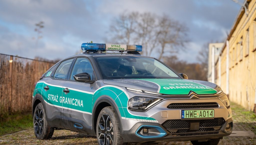 Zgodnie z umowami podpisanymi w lipcu i sierpniu 2023 roku, do Straży Granicznej trafiło 27 sztuk elektrycznych Citroenów E-C4. To hatchbacki z lekko podniesionym zawieszeniem, za którym nie idą niestety walory offroadowe, zwłaszcza że te auta są cięższe od swoich spalinowych odpowiedników. Napędzane są silnikami elektrycznymi o mocy ok. 156 KM. Akumulatory litowo-jonowe o pojemności 54 kWh mają im zapewniać nawet do 420 km zasięgu na jednym ładowaniu.