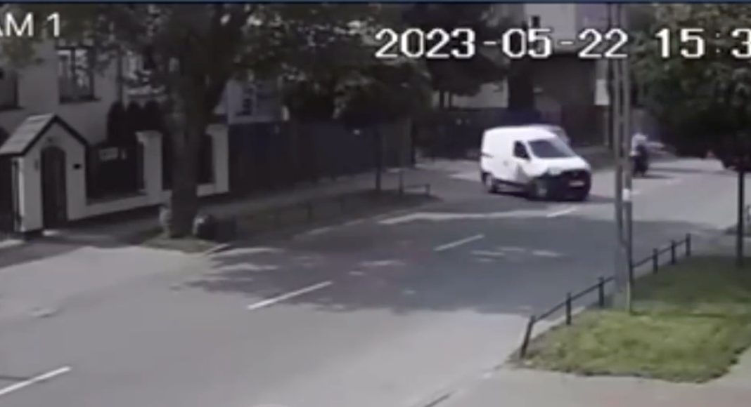 Film z monitoringu, na którym widać poniedziałkowy wypadek, pojawił się na popularnym kanale Stop Cham. Stojące na podjeździe równolegle do jezdni auto prowadzone przez kuriera włącza się do ruchu, z zamiarem zawrócenia. W momencie, gdy jest już niemal idealnie w poprzek ulicy, uderza w nie motocyklista. Dla poszkodowanego kierowcy jednośladu kończy się to złamaną nogą i podejrzeniem obrażeń wewnętrznych.