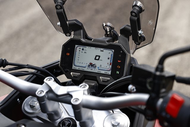 Motocykl posiada kolorowy wyświetlacz LCD, który automatycznie dopasowuje się do warunków oświetlenia. Jak na prawdziwego ADV przystało, na czytelnym wyświetlaczu znajdziemy najważniejsze parametry dotyczące jazdy: wskaźnik biegu, wskaźnik ciśnienia opon, wskaźnik naładowania akumulatora, średnie spalanie. To wszystko w cenie 27799 za wersję podstawową lub 30999 zł za wersję z pełnym zestawem aluminiowych kufrów.