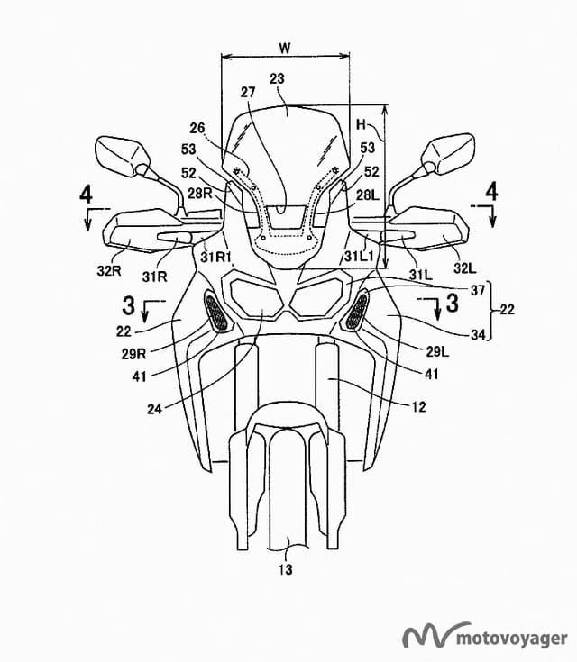 Tym razem pachnącą nowością stertę projektów gotowych do opatentowania złożyła Honda. Z rysunków możemy się domyślać, że w przyszłym sezonie długo wyczekiwane dziecko koncernu, nowa Africa Twin otrzyma co najmniej dwa ulepszenia. Motocyklowych turystów na pewno ucieszy regulacja wysokości przedniej szyby, a komfort na pustynnych autostradach podniesie tempomat.
