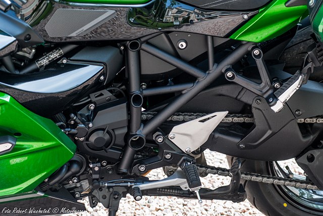 To wszystko dlatego, że różnice jednostki H2 względem H2R, który w serii generuje 300 KM są niemalże kosmetyczne, a zawierają się, oprócz elektroniki sterującej, w trzech elementach: budowie sprzęgła, innej uszczelce pod głowicą oraz kątach wałków rozrządu.
