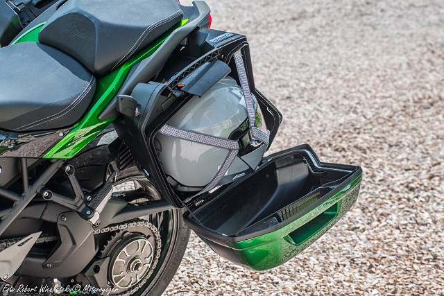 Korzenie tego zielonego uberturystyka sięgają 2015 roku, kiedy to wprowadzono serię H2. Od tamtej pory główne założenia inżynierów wcale się nie zmieniły. Mamy do czynienia ze sportowym motocyklem premium, zbudowanym na stalowej, kratownicowej ramie, wyposażonym w silnik doładowany kompresorem. Z tym, że wersja SX ma być przystosowana do szybkiej turystyki, wygodna i wyposażona w całkiem pojemne kufry boczne.