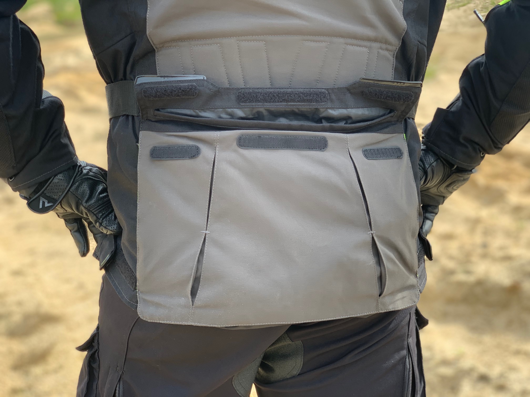 Poza opisanymi wcześniej aspektami niezwykle ważna jest również funkcjonalność. Niezwykle ważna jest nie tylko liczba kieszeni, ale także ich rozmieszczenie i funkcja. W przypadku kurtki mamy aż 8 kieszeni zewnętrznych (2 wodoodporne), a w tym jedną sporą na plecach, która jest nieoceniona podczas jazdy z plecaczkiem. Zmieściły się tam wszystkie akcesoria, które przydawały się jadąc na motocyklu i które bez problemu moja druga połówka mogła wyciągnąć podczas jazdy, jak chociażby kamera GoPro. Po wewnętrznej stronie znajdziemy dwie dodatkowe kieszenie zamykane na zamek. Identycznie jest w przypadku tych typu cargo na udach, które nie tylko są pojemne, ale nawet po włożeniu w nich niewielkich przedmiotów nie uwierają.