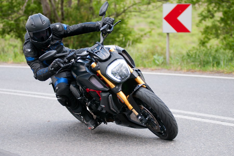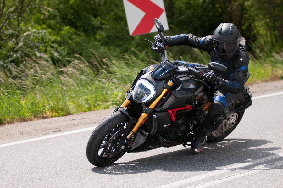 Jeździłem kiedyś VZR1800 i widząc monstrualną Diablo Rosso III na tyle DIAVELA bałem się, że ten motocykl będzie podobnie zachowywał się w zakrętach. Tu kolejne zaskoczenie, Ducati jedzie jak po sznurku i nie trzeba mu w tym specjalnie pomagać. Górskie winkle ochoczo zachęcają do szukania granicy swoich możliwości, a motocykl chętnie wykonuje to, co mu nakażemy.