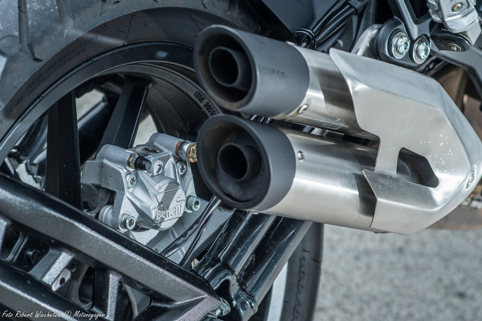 Brzmienie silnika, to zdecydowany plus 502 C. Choć cały czas twierdzę, że w TRK 502 silnik brzmi najlepiej, to jednak C nie ma się czego wstydzić. Cicho, basowo, miło… No i wygląd wydechu powala – przynajmniej od zewnętrznej strony. Dwie gotowe do strzału lufy! Od wewnętrznej widać niedbale położone spawy, które wyglądają bardzo niechlujnie.