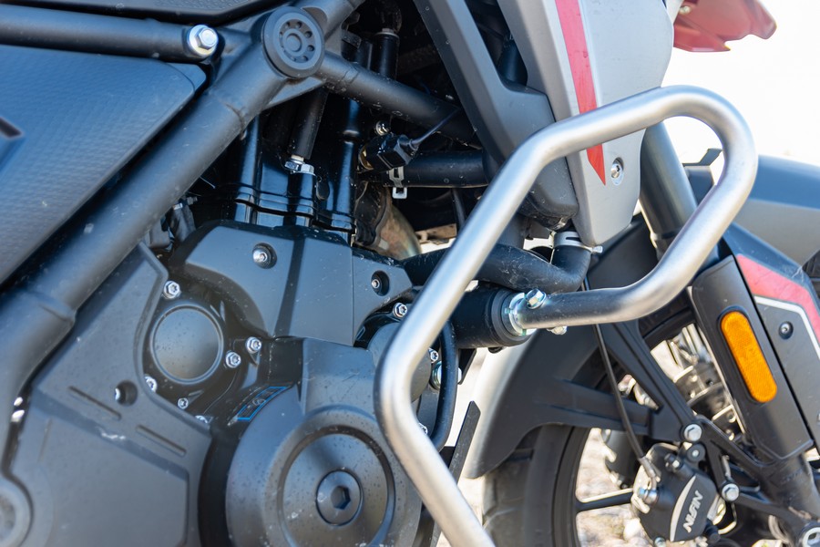Silnik ma niepowtarzalny charakter. W końcu to dosyć spora pojemność, jak na jeden cylinder. Obecnie oferowane adventury tej pojemności mają dwa cylindry – w rzędzie, lub w V-ce. Voge wykazuje się mniejszą kulturą pracy, ale drgania były najbardziej dokuczliwe podczas ruszania. W trakcie jazdy nie są aż tak znaczące. Motocykl jest dynamiczny, ale trzeba go trochę pogonić, podkręcając obroty. Moc oscyluje w granicach 48 KM. Podczas przejażdżki nie miałem powodów do krytyki skrzyni biegów. Przełożenia wchodzą precyzyjnie i pewnie. Podobnie było z hamulcami. Są naprawdę niezłe.