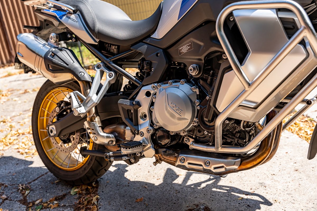 Ale wróćmy na pokład Voge 900 DSX. Motocykl napędza dwucylindrowiec o pojemności 895 cm3, mocy 95 KM i maksymalnemu momentowi sięgającemu 95 Nm. Piec ten jest konstrukcją znaną z BMW F 850 GS, więc nie trzeba go od nowa przedstawiać. Wytwarzany w tej samej fabryce co oryginał, de facto różni się jedynie znaczkiem na deklu.