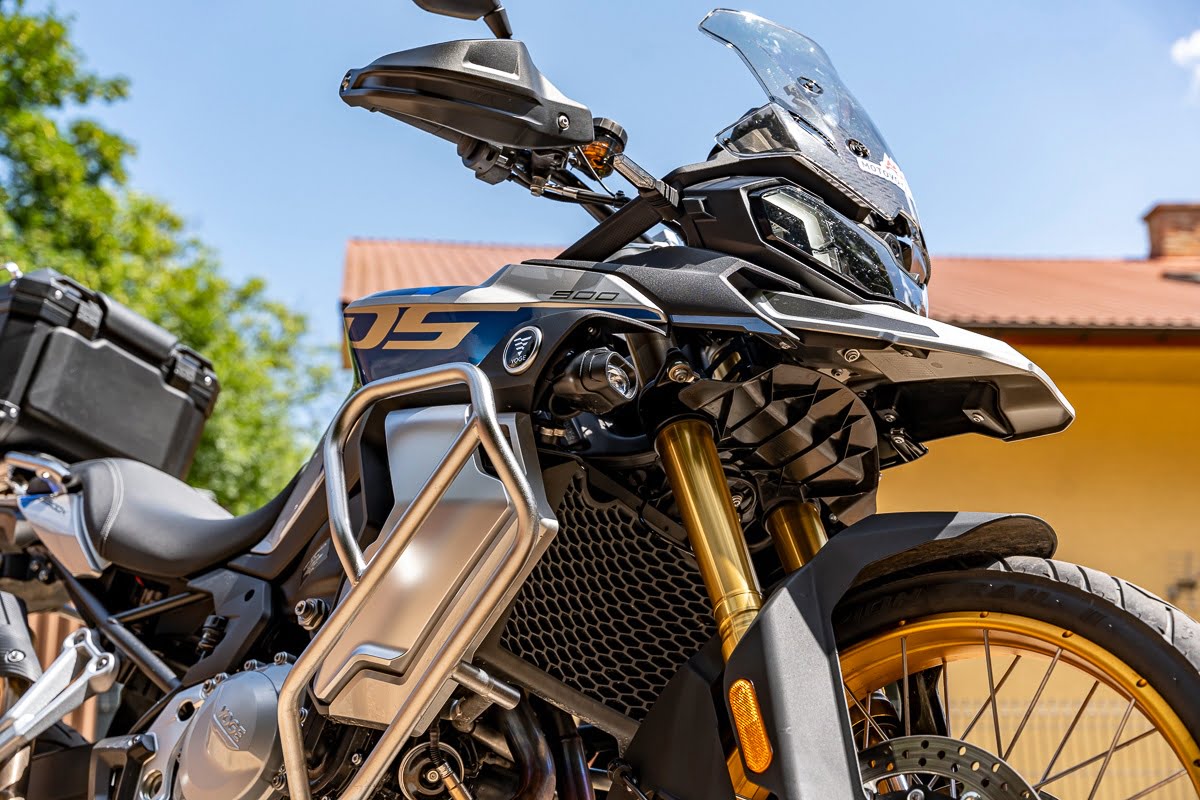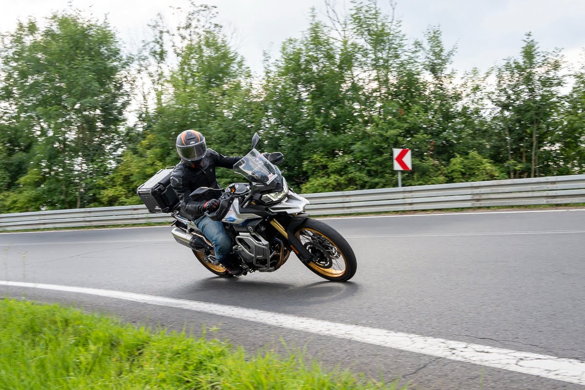 Z tyłu mamy natomiast koło średnicy 17 cali. Zanim zaczniecie hejtować, że co to za wybór, że do 21 pasuje jedynie 18, to jednak muszę was zaskoczyć – a może i nie. Motocykle adventure mocniej nastawione na offroad rzeczywiście posiadają taki zestaw (KTM 890 ADV R, Tenere 700, Tuareg 660), ale są i na rynku takie, które bardziej kierowane są w stronę komfortowej podróży po asfalcie, czy po drogach najgorszego sortu (V-Strom 800 DE, BMW F 900 GS Adventure) i one posiadają właśnie zestaw 21 – 17. Zresztą – nawet najnowszy, lekki F 900 GS posiada tylne koło 17 cali, choć ten model ma działać także w cięższym terenie. Cóż, w tym zestawieniu ja po prostu widzę dziedzictwo BMW, które w swoje modele pcha drogowej średnicy tylne koło, a Chińczycy nie chcieli, i serio nie musieli, tutaj nic kombinować.