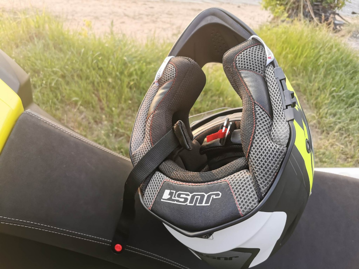 Co z głośnością, zapytacie? Nie jest to kask wybitnie cichy, ale po zamknięciu wizjera dało się bez problemu jechać. Choć słyszymy szum powietrza, to jednak nie ma żadnych gwizdów, które zdarzają się w tańszych skorupach. Jadąc w nim w trasę po prostu założyłem moje turystyczne zatyczki do uszu i to rozwiązało całkowicie sprawę. Nie mogę powiedzieć o nim, że jest głośny, ale też nie powiem, że jest cichy.
