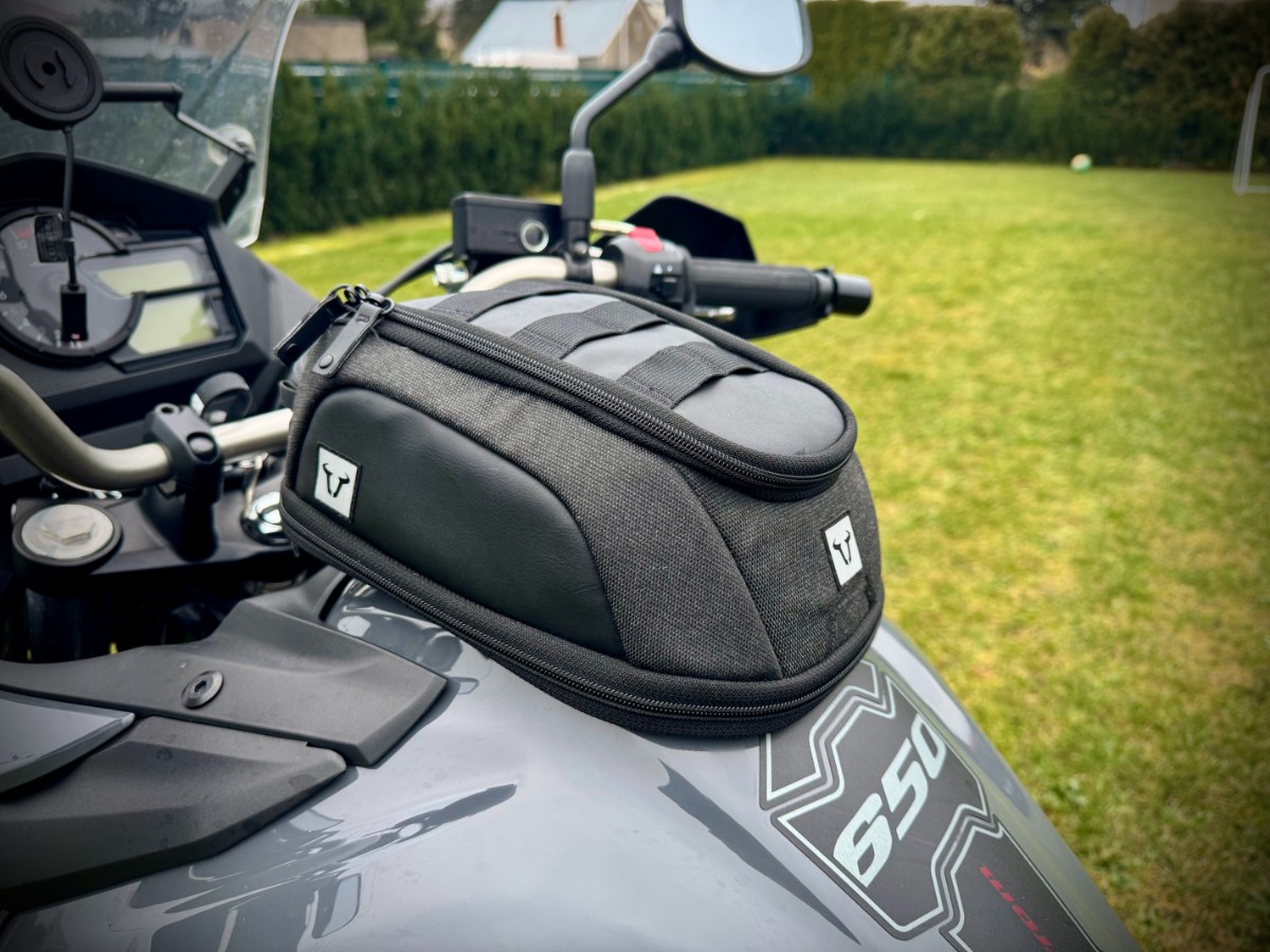 Od kilku lat używam tankbagów SW-Motech mocowanych na pierścieniu wokół wlewu paliwa. Konkretnie tych z najwyższej serii Pro, z dodatkowym „naprowadzaniem” magnetycznym przy zakładaniu torby na ring. Uważam je za najwygodniejsze w obsłudze i najbardziej praktyczne na rynku – i nic się w tej materii nie zmieniło. Póki będę miał własne motocykle z zamontowanym pierścieniem, jak obecnie V-Stroma 650, mój SW-Motech Daypack będzie ze mną na każdym wyjeździe.
